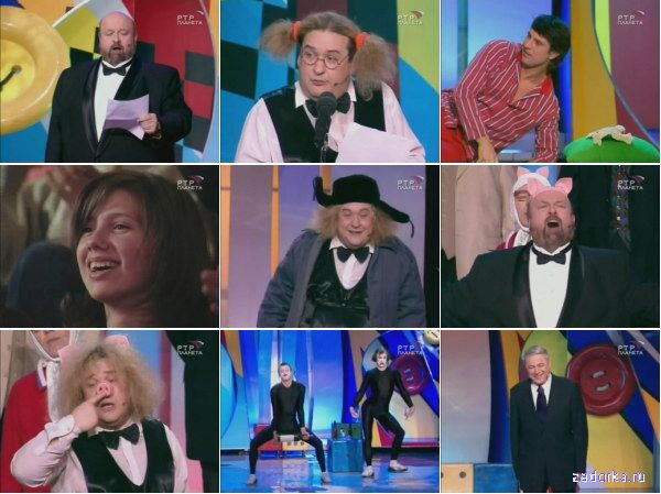 "Музыкальный сюрприз" от самых маленьких Абблом "Поездка в Америку" - театр "Кривое Зеркало" "Спокойной ночи" Виктор Коклюшкин Озорные куплетисты бестыдники - Игорь Христенко и Михаил Церишенко Новые дети нашего времени "Репетиция в театре" - театр "Христофор" "Зона доступа" Михаил Смиорнов и Елена Степаненко "Хрустальная гармония" соната на бокалах Стишки детские "Роддом" театр юмора "Канкан" "Хочу дурочку" Евгений Петросян/