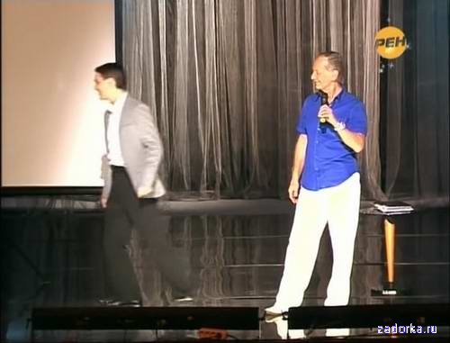Сейчас я хочу представить вам работу молодого автора. Он из Риги, мне жаль что он не переезжает в Москву, поскольку если бы переехал, то стал бы скоро Задорновым, а в Риге он им не станет. В Риге нет такой энергии как в Москве. Я покажу вам его работу, если Вам не понравится, я его даже не позову на сцену. Если понравится, я его позову, он Вам поклонится. (показывается нарезка сюжетов от Гарри Польского). А сейчас я приглашу на сцену молодого человека, который живет в Германии и прилетел позавчера из Берлина. Те, кто ходит на мои концерты регулярно уже с ним знакомы. Когда я поместил на моем сайте его песни у меня за месяц было 200 000 скачиваний без всякой рекламы. Я с ним познакомился на фестивале «Новая Волна» несколько лет назад. Он приехал их Германии, но выступал за Испанию, потому что в Испании довольно долго жил. И он начал учить в Риге русский язык, думая, что это латышский. Мне очень понравилось, как он выступал. Он замечательно играет на рояле, я давно не слышал, чтобы кто-то так играл. Он в Юрмале получил приз зрительских симпатий. Я ему предложил, чтобы мы вместе сделали песни на русском языке, только ты мне поверь. Верь мне годик, а потом посмотрим на результат. Он мне доверился. Я стал его обучать русскому языку по своей системе. Если смешать все языки, получится русский. Итак, я приглашаю на сцену Брендана Стелона из города Берлина. Брендон, прошу тебя на сцену. Вот такой у нас гость из Германии. Мы сделали песни по стихам некоторых русских поэтов. Брендон композитор. Он написал музыку на стихи Волошина, Гумилева, и я познакомил его с Евгением Евтушенко. Евгений Евтушенко живет в Америке, к сожалению он в России не пригодился, а там он читает лекции по русской поэзии американским студентам. Но при знакомстве Евтушенко дал ему свои стихи и они списались. (Брендон Стелон исполняет песню). Брендон, я хочу тебе сказать, что после того, как люди послушали у меня на концертах твои песни, появились письма. Какие-то похвальные, какие-то почти нет, но были претензии, потому что ты пел много песен на разных языках и появилась справедливая претензия, что ты не спел ничего на немецком языке. И многие не верят. Говорят, что я подсунул им русского пацана из Одессы, который по немецки вообще ничего не понимает. Поэтому давай мы сейчас сделаем с тобой такой концерт не по жалобам даже, а по претензиям. Итак первая претензия, что ты не знаешь немецкого, пожалуйста, оправдайся. (Брендон исполняет песню на немецком). Была претензия, а почему он исполняет песни на европейских языках? Мы живем в Азии. Россия – это Европа и Азия. Несправедливо. Азия большая, а ты ни на одном азиатском языке не пел. Ну например, Индонезия! (При этих словах Брендон уточняет: «Из своего что-то спеть?») Нет, вы слышали? Из своего! Он с утра на индонезийском пишет, а к вечеру на другой переходит. Пожалуйста, Брендон, из своего, но на индонезийском! (Брендон поет на индонезийском). Ну вообще, я вам должен сказать, что я понимаю индонезийский язык и эта песня была о любви индонезийской девушки. Брендон, ну а на африканском языке ты можешь что-нибудь спеть? Из своего! (Брендон уточняет: «на Суахири»?). Да ты можешь и на нем, мы все равно правды не узнаем. Суахири тут не знает вобще никто. Впервые в мире человек поет на Суахири. А припев спой на русском, чтобы мы поняли, что ты там насуахирничал. (Брендон исполняет п