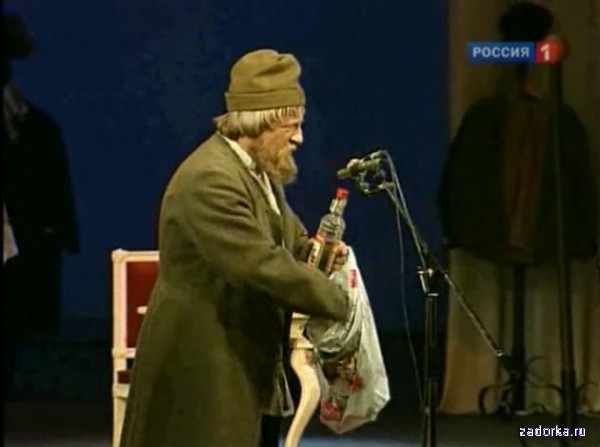 В номере участвует: Геннадий Хазанов в качестве бедного бомжа актера 90-х годов
