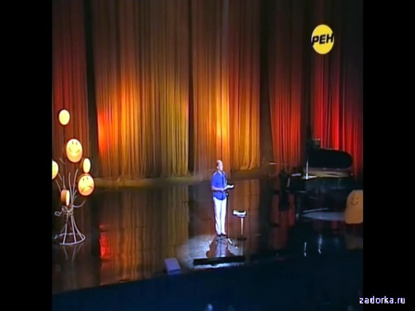 Я зря к вам придирался, зал очень отзывчивый. Хорошо реагируете. На РЕН-ТВ мне предложили снять несколько фильмов короткометражных по моим по моим рассказам. Вообще, мало кто знает, что раньше я писал рассказы о любви, немного с юмором, но не эстрадные. не проявлялся как злокачественный сатирик, вот один из моих рассказов, который хотели снять. Метро, люди сидят, воскресный вечер, довольно хорошее у всех настроение и, она разбудила его, он спал у нее на плече. Она ему говорит: «слышь, Автозаводская». Он очнулся, пришел в себя, и спросил, что они уже приехали? Она говорит: «давай, вставай, пошли». Он ей говорит: «Слушай, а может до Каховской махнем?!» Она на него посмотрела, и говорит: «зачем?» Он ей: «Ну столько лет тут живем, и ни разу не ездили до Каховской! Ведь молодые же! Давай просто закроем глаза, и вот так не глядя, до Каховской!». Она встрепенулась так, немного подумала, потом говорит: «Нет, давай в другой раз. Мне надо кое-что приготовить на завтра, рубашку тебе простирнуть, вон капнул чем-то. Нехорошо в такой на работу идти, а насчет Каховской, давай вот как-нибудь в другой раз, когда посвободнее будем, заранее договоримся и прям рванем!». Он завелся: «Давай, брось! Давай сегодня! Ты подумай, ведь жизнь уходит, а мы ничего не видим, так в старости и вспомнить нечего будет. А сейчас представляешь! Поезд, говорят, за Автозаводской на землю выходит. По ночной Москве, там Варшавская, за ней Каховская, небо видно из метро!» «Уговорил, сказала она. Действительно, ведь молодые. Можно и до Каховской». В этот момент поезд остановился и женский голос объявил: «Внимание, Автозаводская. Поезд дальше не пойдет. Просьба освободить вагоны». Они вместе со всеми вышли на автобусную остановку. «Видно не судьба, сказал он». Она начала его утешать, что ничего страшного, что в следующий раз они обязательно съездят и до Каховской, и в сквер сходят. Он сказал, что он особо и не расстраивается, потому что день итак хорошо прошел, ЦСК выиграли, оба гола забили наши русские негры, офицер российской армии. А завтра с таким пятном на работу и правда нехорошо. Вставать рано, в общем, правильно, что сдержались. Но в другой раз точно, да? На все плюнем и рванем. И они счастливые, поспешили домой. Причем, режиссер придумал очень хороший ход, пока они это обсуждали, люди в метро постарели все.