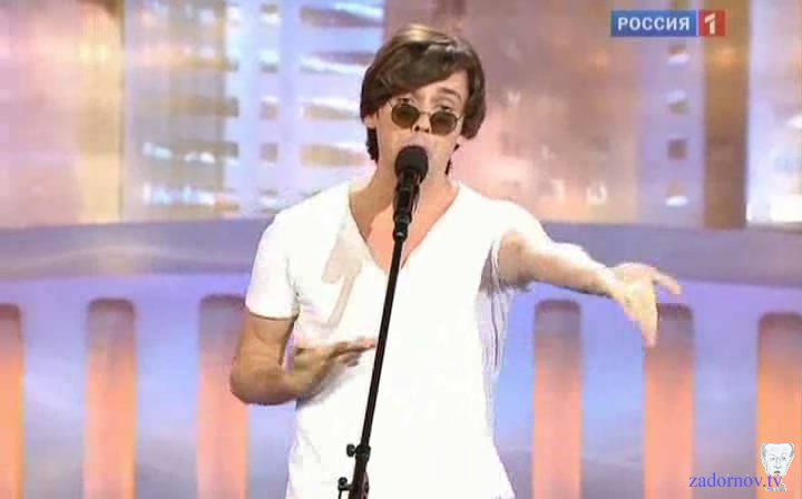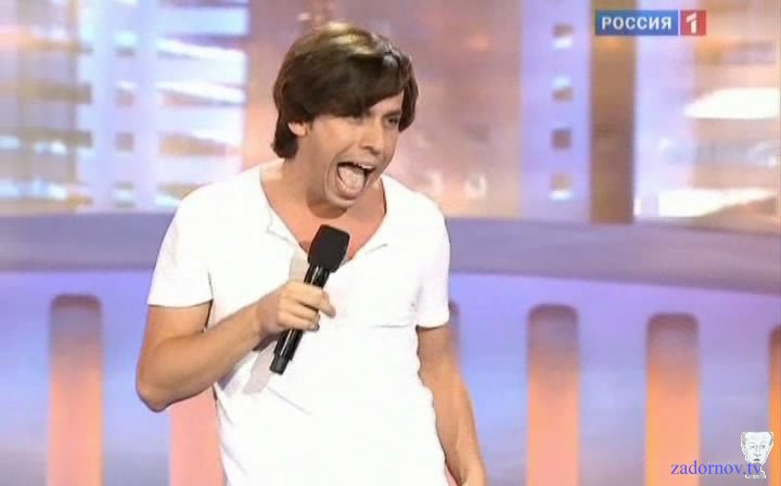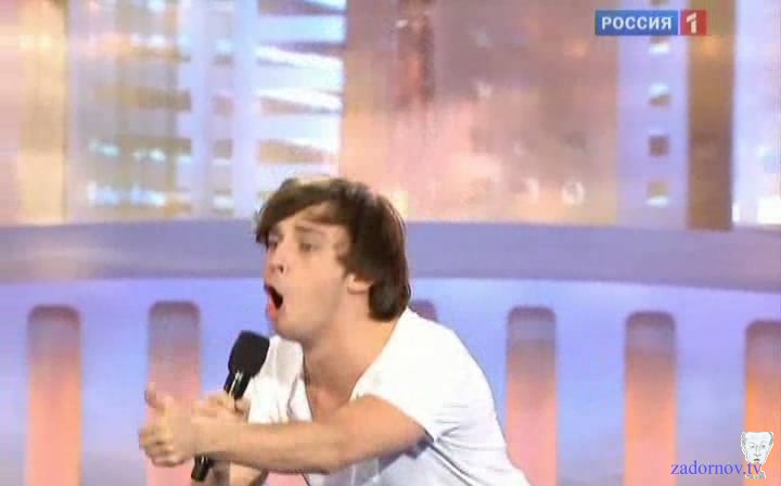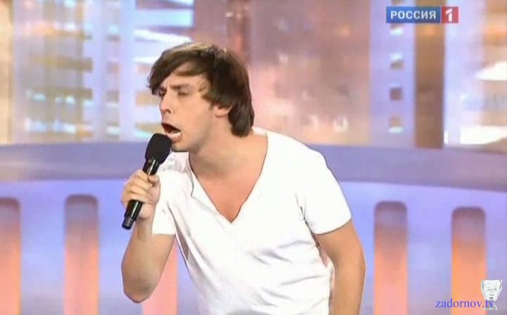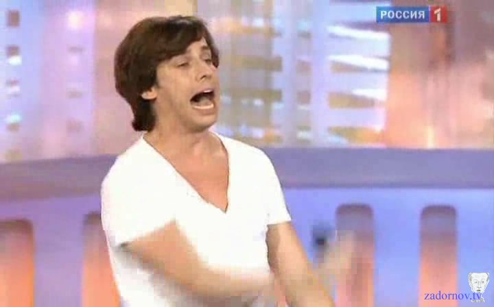 Я обожаю эту сцену, потому что она соединяет конечно же музыкальную и юмористическую эстраду, здесь проходит музыкальный фестиваль "Новая волна", здесь проходит юмористический фестиваль и я безусловный патриот нашей эстады и я очень горжусь нашими исполнителями и не понимаю тех, кто любит хаять все наше, говорят вот, у нас не то, вот фирма. Да вы что, у нас потрясающие.. Дима Билан. Я хочу сказать что Дима Билан это находка для пародистов, потому что даже петь не надо. Он потрясающе поёт, но он когда выходит, понимаете, у него с ногами такое происходит, что до того как он начал петь, уже зрителям интересно, что произошло за кулисами, что у него такое с ногами. Причем у него обычно висит ширинка где-то на уровне колен, болтается, а под конец песни падают вообще эти штаны. Щас после того как я сделал эту пародию он стал натягивать штаны. Джинсы узкие стал надевать, прям натягивает, я волнуюсь за его отцовство. Ну не так конечно как Леонтьев, тот вообще, по молочный план. Ну это телевизионщики знают как показать артиста в молочном плане, а как в пасхальном плане. Ну Леонтьев он же не просто, он штаны такие еще и украшает, всегда там ракушка морская, ну чтобы понятно было где че. Водоросли какие то висят, сверху сеточка рыболовная на голой груди, как будто в порту морском переодевался.