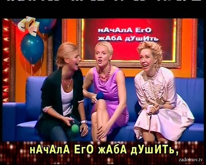 Ольга Тумайкина, Анастасия Задорожная, Жанна ЭплеЛеха камикадзеПисаренко в Хороишх ШуткахЖанна Эппле на конкурсе АПОЖЛазарева подсела поугаратьПисаренко носит табличку 4 конкурсаНикишин поетЗадорожная вверх ногамиСергей Писаренко, Евгений Никишин, Александр ЖуринТумайкина объясняет сказку гласнымиЗадорожная в полетеИнтересная сковородка глазами Писаренко