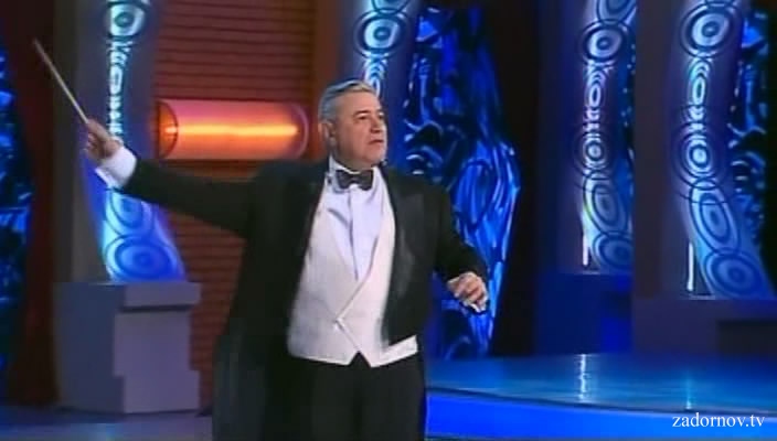 Еще один римейк. Это было в 80-м. Мой друг Аркадий Хайт написал монолог "Дирижер". Специалисты его до сих пор вспоминают, рекомендуют мне его возродить, считая может быть классикой советской эстрады. А в чем там особенность этого монолога, почему именно о нем мы вспоминаем? Дирижер управляет оркестром, оркестр играет ни больше ни меньше пятую симфонию Бетховена, о чем же он думает этот дирижер? Оказывается он думает о бытовых проблемах, о своих личных каких-то делах, т.е. он выключен из творческого процесса, а это самая большая беда для артиста. Я вот всем .артистам объясняю, когда входите в театр, оставляйте свои проблемы на улице, желательно за два квартала, потому что здесь на сцене должно твориться волшебство. Здесь наше подсознание сотрудничает с небесами, оттуда что-то возвращается, какой-то импульс и через артиста веером расходится по зрительному залу.