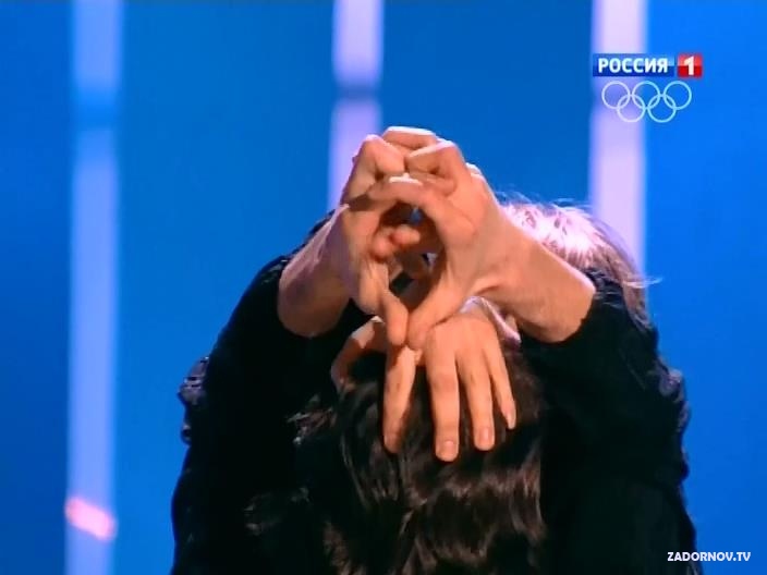 С помощью 4-х рук показывают как рождалась жизнь на Земле.