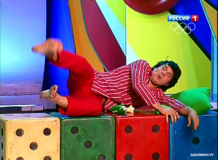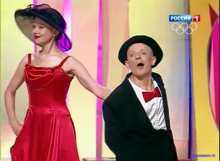 Алексей Миронов - клоунада "Гимнастика, мужик в розовом облегающим комбинезоне изображает девочку гимнастку.
