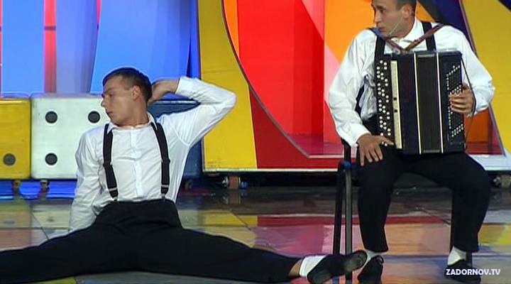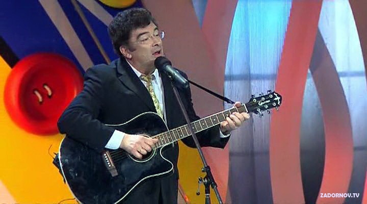 Ведущий Михаил Смирнов на гитаре на примере хита "Чумачедшая весна" придумывает другие песни используя дефекты речи;