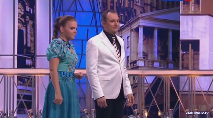 Сценка Девятовой и Ещенко - девушка поет русские народные песни, а сатирик добавляет про ЖКХ - Ну как вы знаете, Святослав артист смехотвороного жанра.. - А Марина получается артистка песнотворного жанра, которая так проникновенно, с таким чувством, с таким пониманием поет о Жилищно-Коммунальных проблемах в русских народных песнях. - Слава, какие Жилищно-коммунальные проблемы? Я пою народную песню! - Мариночка, так коммунальное хозяйство самое что ни на есть народная песня. - Да что ты говоришь.. - Что я говорю! Вот напой любую песню из своего репертуара, а тебе докажу, что всё про ЖКХ. - Да пожалуйста.