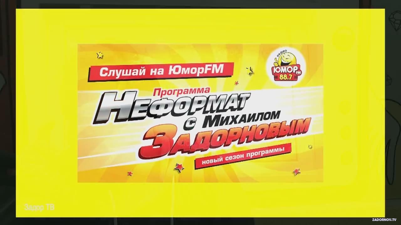 Название передачи: Неформат с Задорновым Доступность: смотреть в онлайне, слушать mp3 онлайн радиостанция: Юмор ФМ Дата первого эфира: 10 октября 2014 год Продолжительность: 1 час 21 минут