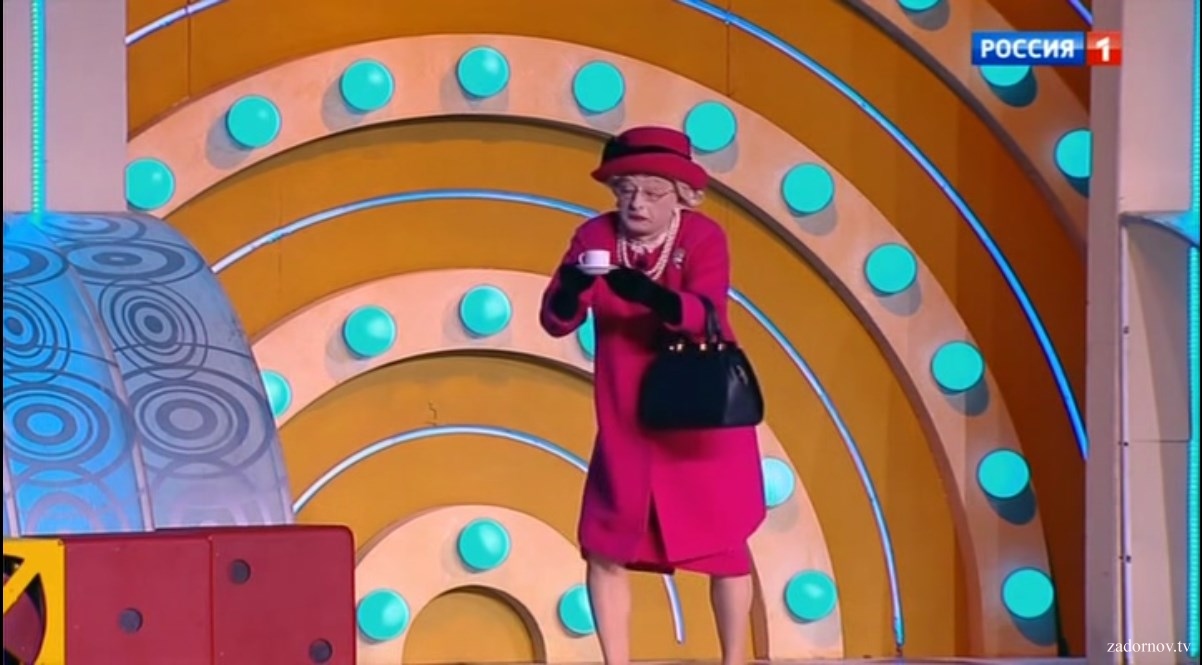 Александр Ананьев в роли бабки в красном "Клара Карловна"