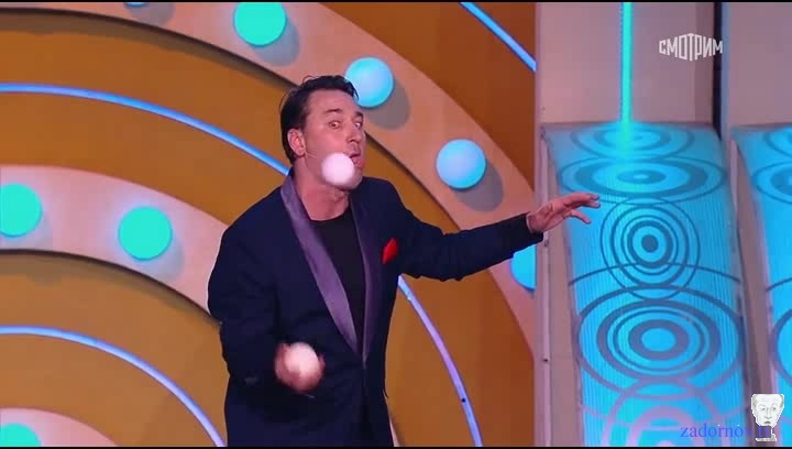 Жонглирование яйцом, яблоком и мячом для боулинга